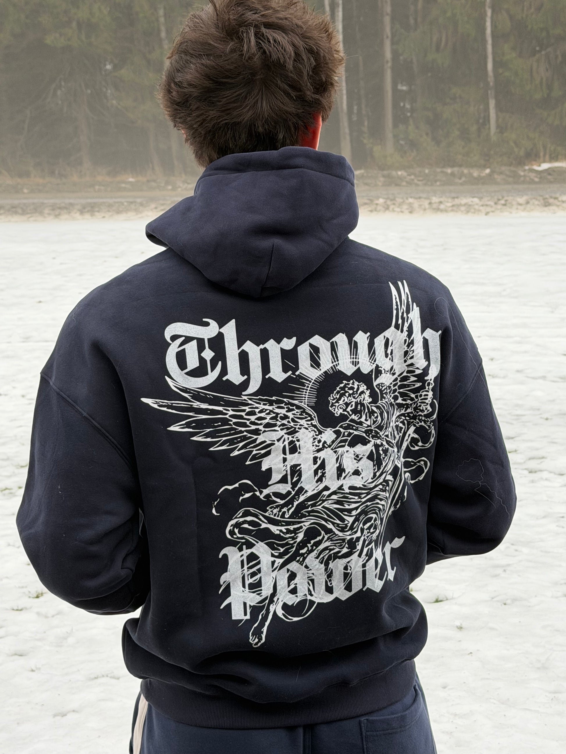 Through His Power Hoodie in Navy